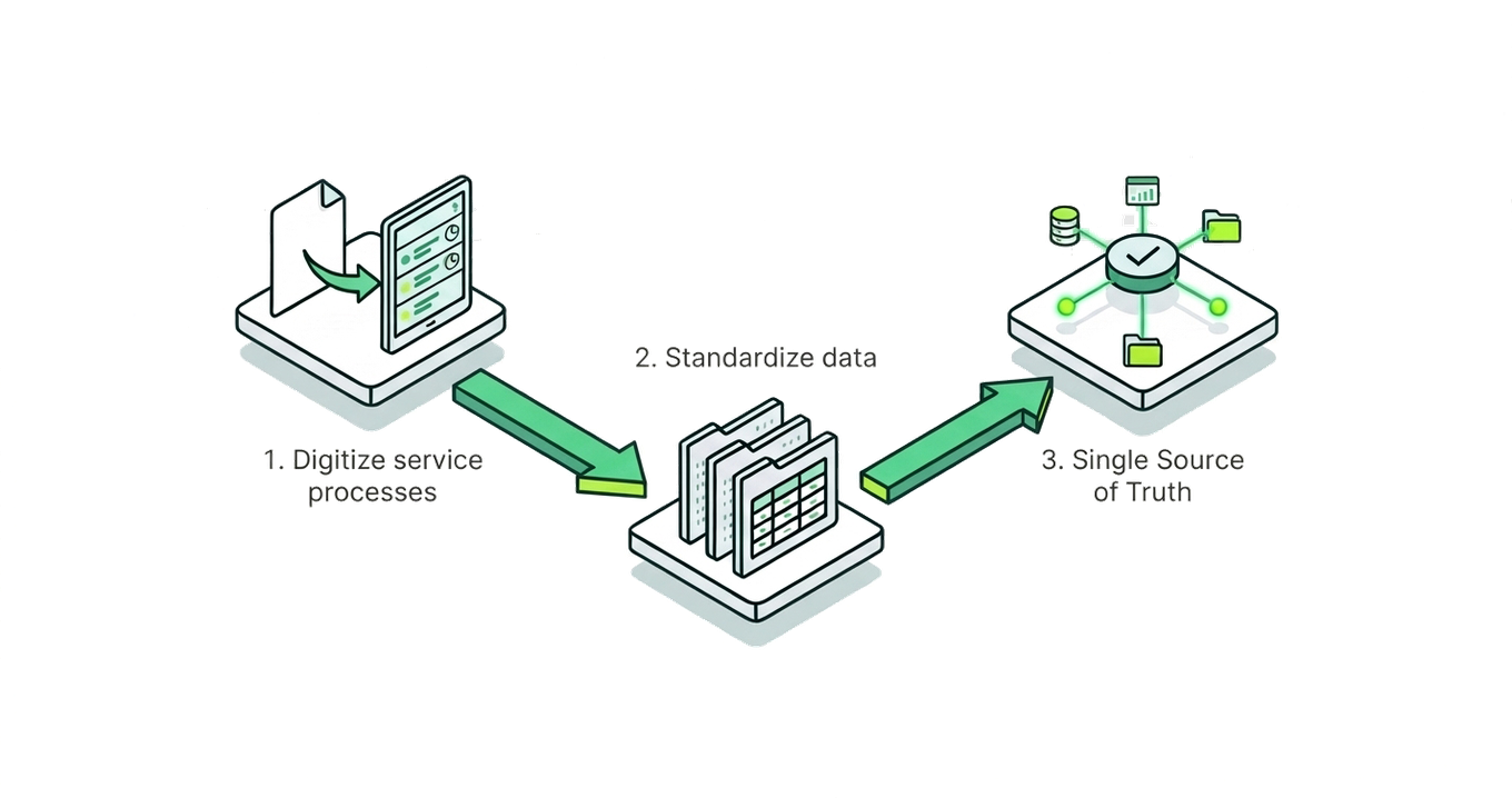 Replace paper and Excel with digital service reports and centralized planning. Goal: capture future data in an orderly way.